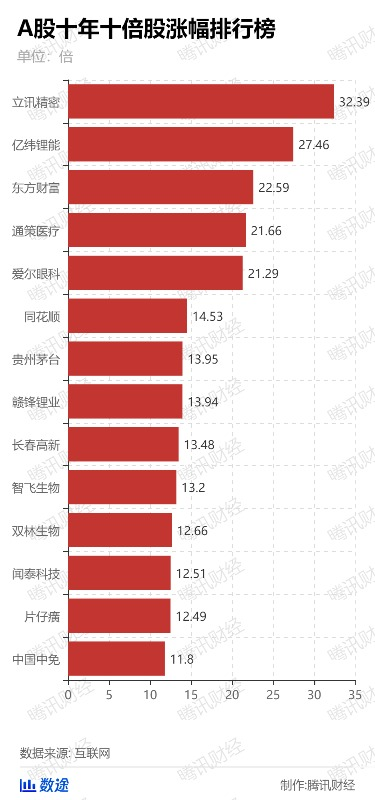 十倍股,由投資大師彼得·林奇首創(chuàng),指的是那些股票價(jià)格上漲超過10倍以上的股票。假定你買入了一只十倍股,一萬會變成十萬,一百萬變成一千萬,一千萬變成一個億。找到一只,就足以讓你的投資組合收益率大幅提高。10年10倍股,這幾乎是所有投資者夢寐以求的標(biāo)的,只是這樣的股票往往可遇而不可求。正所謂:翻倍已屬不易,況乎10年10倍。